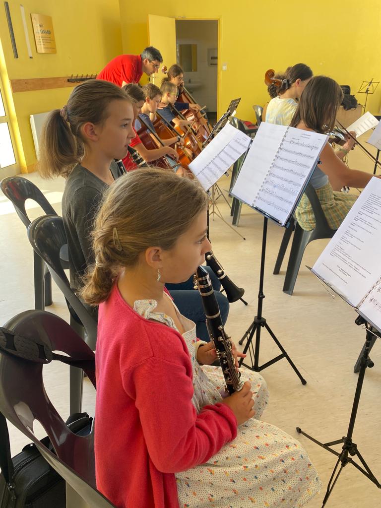 Au 5ème jour du stage, l’activité bat son plein. La Flûte Enchantée prend forme, musique, décor, texte….